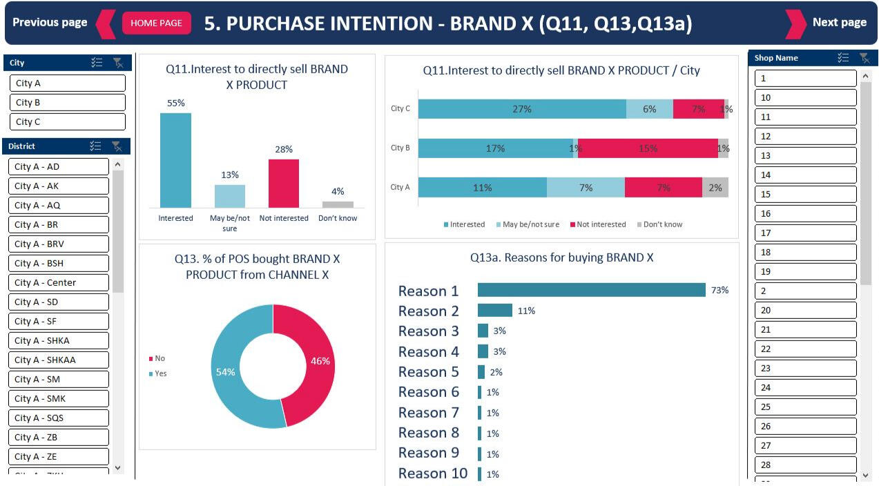 a brand’s sales performance across different point-of-sale (POS) levels. Routinely, a questionnaire was developed, scripted, and pilot-tested before carrying out the data collection phase.An interactive dashboard was created by processing the gathered data and presenting the findings. This is mostly because the findings were dispersed over several cities, districts, and store levels. Therefore, it was crucial to thoroughly cover each of those levels.
