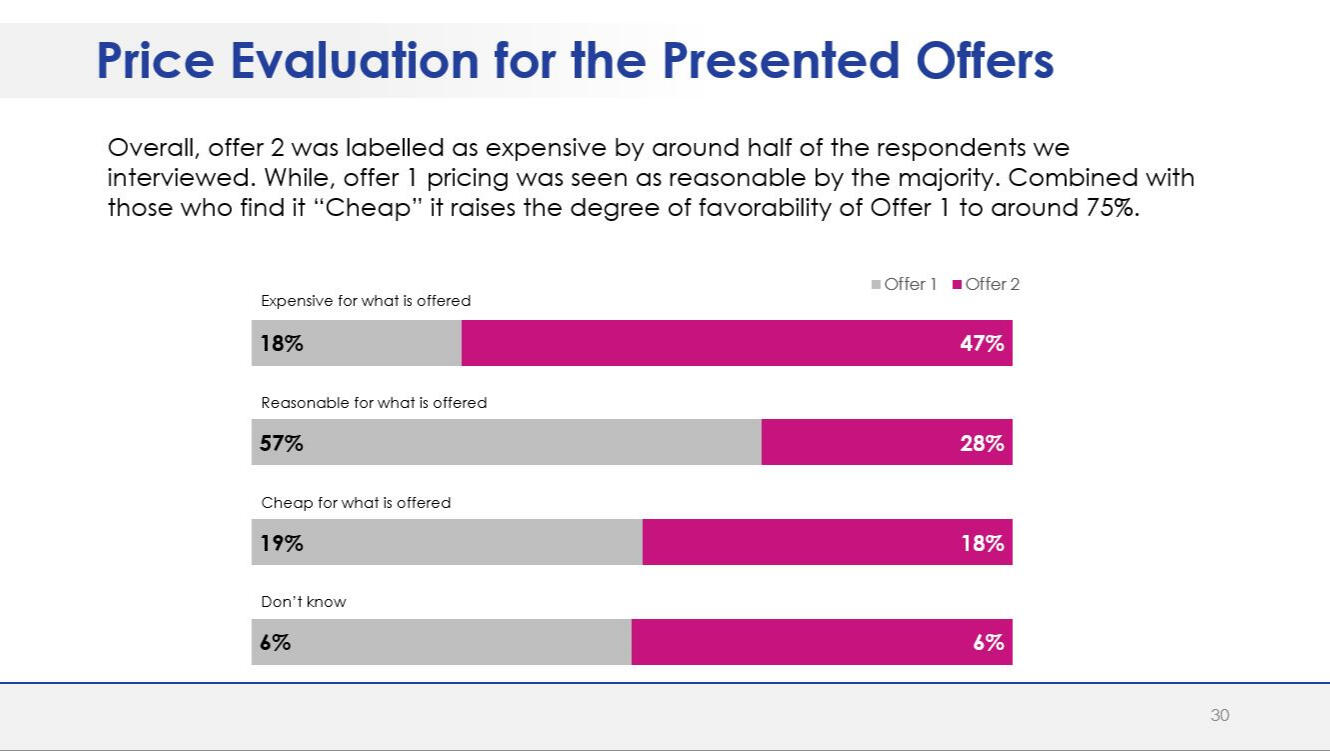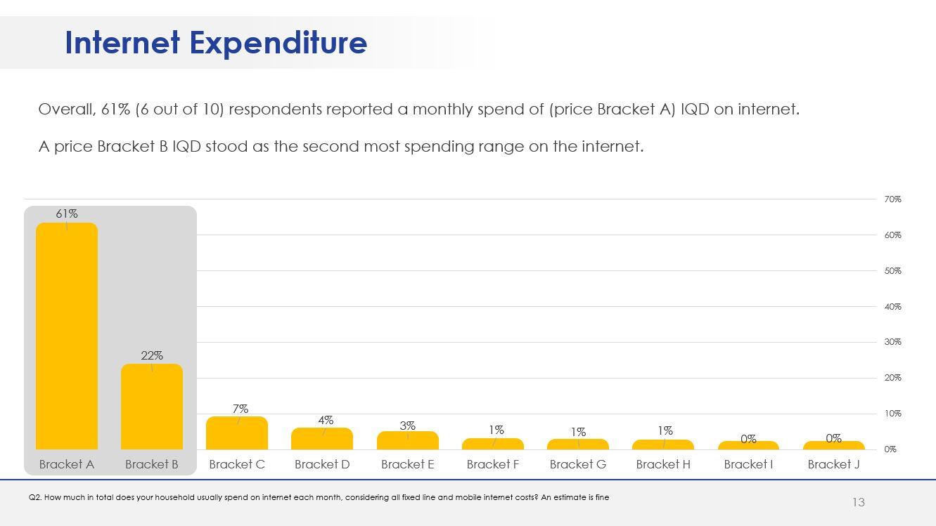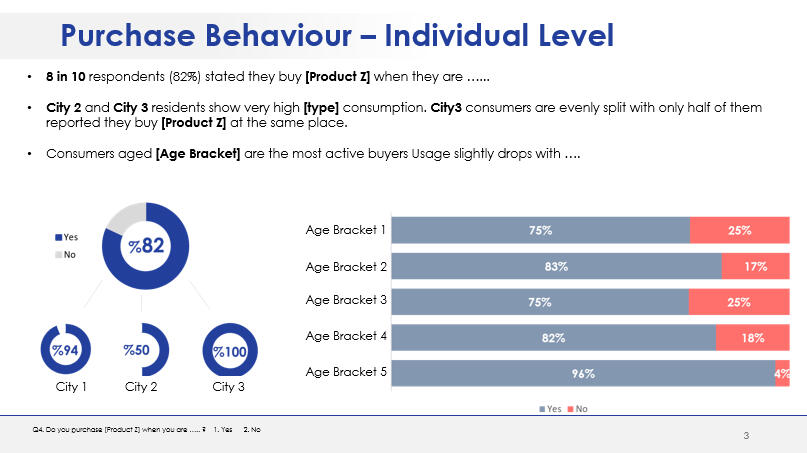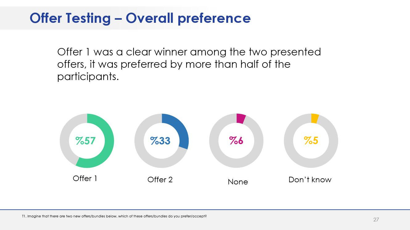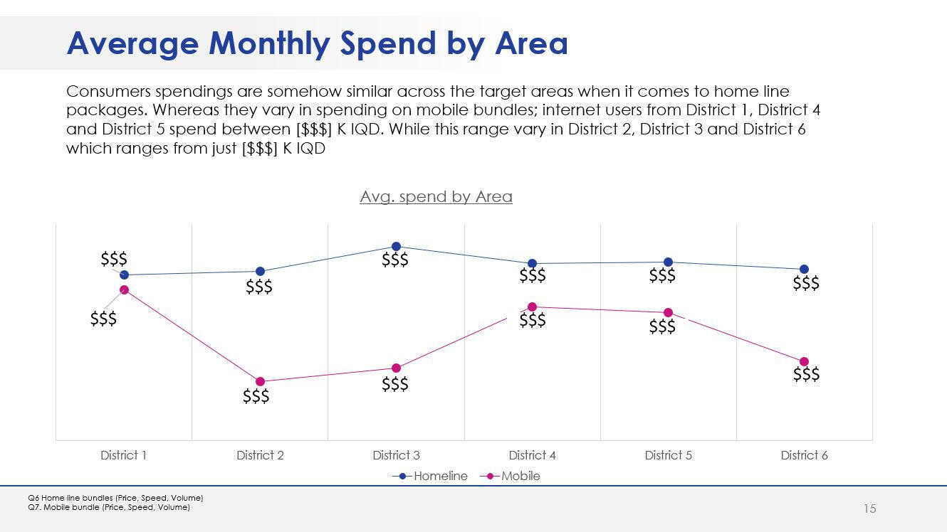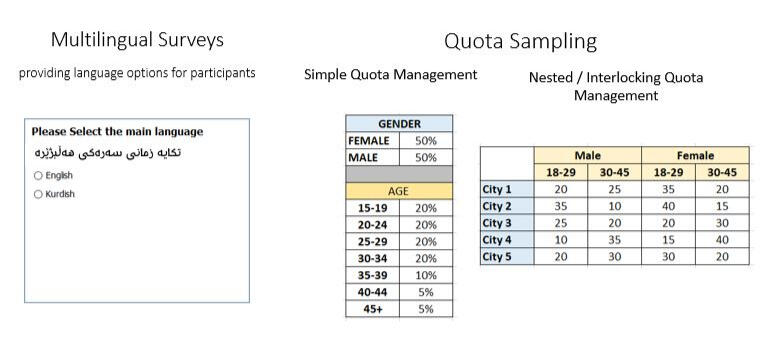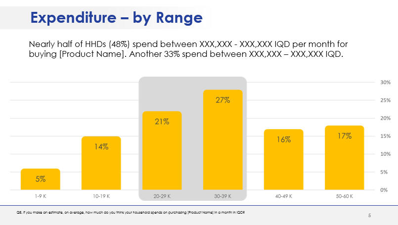 - Testing two designed offers in terms of price and likelihood to purchase.A questionnaire in English was designed in line with the research objectives. The questionnaire was translated into Arabic and Kurdish prior to scripting.The survey was programmed using SurveyToGo Dooblo. Following the fieldwork, the collected data were processed and analyzed using IBM SPSS. The report was developed using standard PowerPoint format.