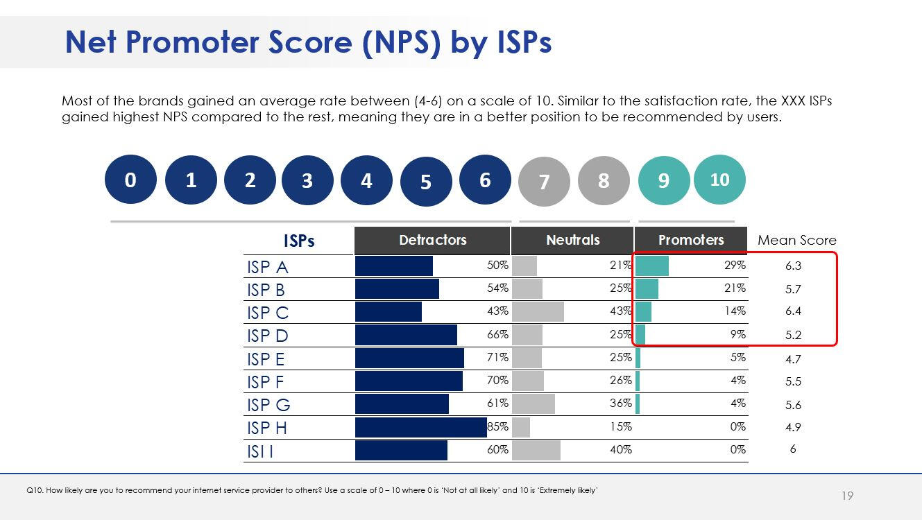 - Measure current satisfaction levels of the available ISPs.