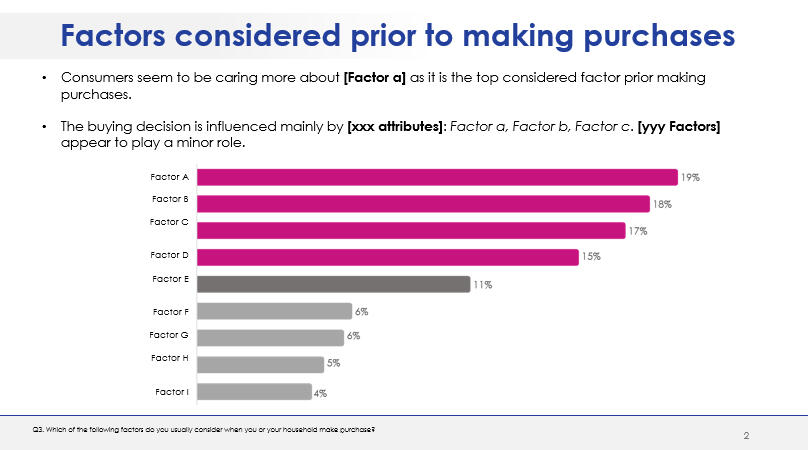 This consumer survey project aimed at exploring the beverage market in Iraq, focusing on three main cities with a specific scope on bottled water.Specific explored areas included:- Purchase behavior, including factors involved in purchase consideration.